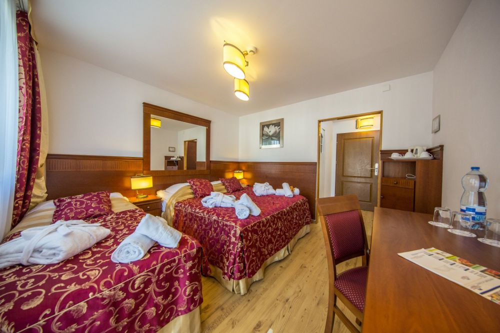 • Dvoulůžkový pokoj s přistýlkou (2 jednolůžkové postele + rozkládací pohovka) a klimatizací