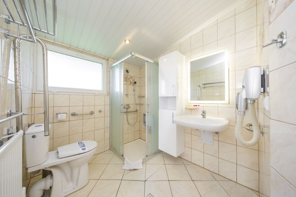 Każdy pokój z wyposażeniem: Telefon, czajnik bezprzewodowy, lodówka, sejf, zestaw do kawy i herbaty. W łazience: kabina prysznicowa, umywalka, wc, suszarka do włosów, komplet ręczników,