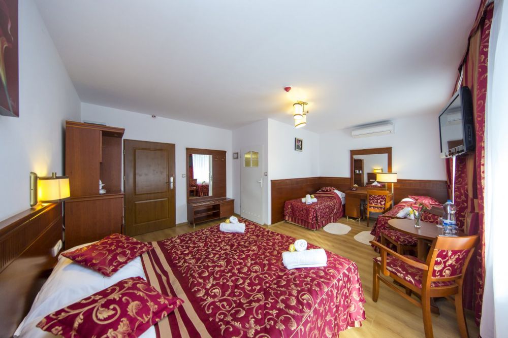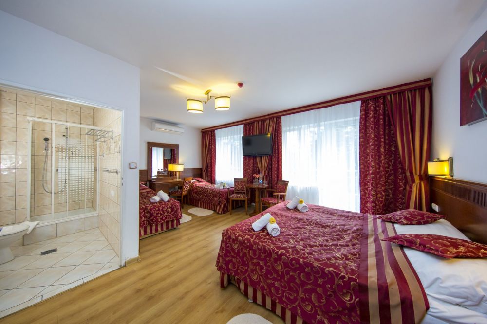 Room equipment: TV sat, phone, electric kettle, fridge, tea and coffee set. In the bathroom: shower cabin, washbasin, WC, hair-dryer, towel set. Free Internet, bathrobes.