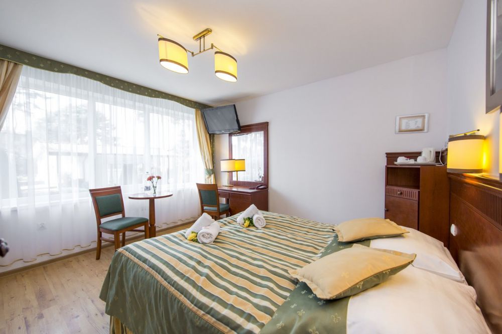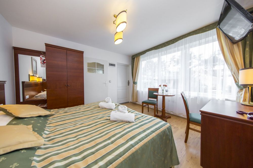 Double rooms in K2 cottages are located in the heart of our Resort, amongst numerous trees and walking paths as well as green bushes and beautiful flowers. These rooms are extremely popular, mainly due to their elegant arrangement, the comfort they offer as well as their functional furnishings.