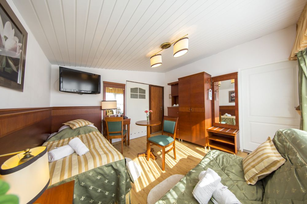 Room equipment: TV sat, phone, electric kettle, fridge, tea and coffee set. In the bathroom: shower cabin, washbasin, WC, hair-dryer, towel set. Free Internet, bathrobes.