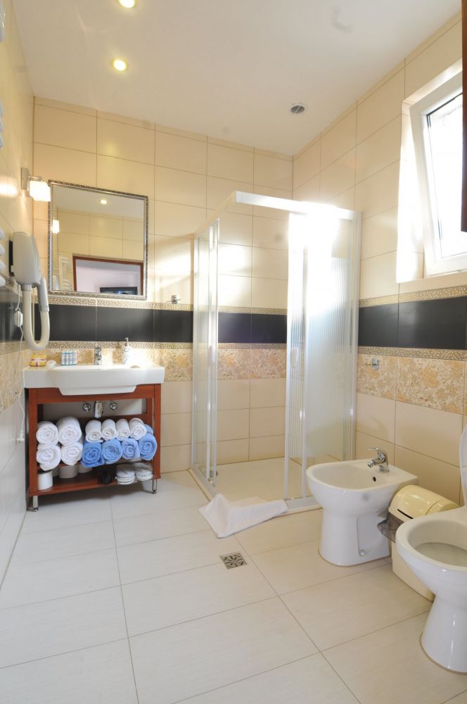 - sleeping room with double bed , TV-SAT, phone and bathroom with hair-dryer, bidet, shower cubicle, wc, bathrobes, towel set. Free Internet, bathrobes.