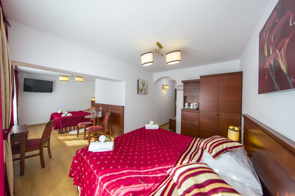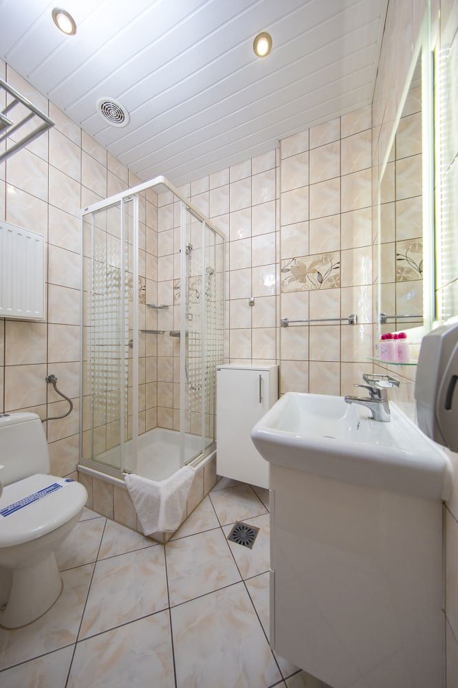 Zimmerausstattung: Sat-TV, Telefon, Wasserkocher, Kühlschrank, Tee- und Kaffee-Set. Im Bad: Duschkabine, Waschbecken, WC, Fön, Handtuch Set. Kostenloses Internet, Bademäntel.